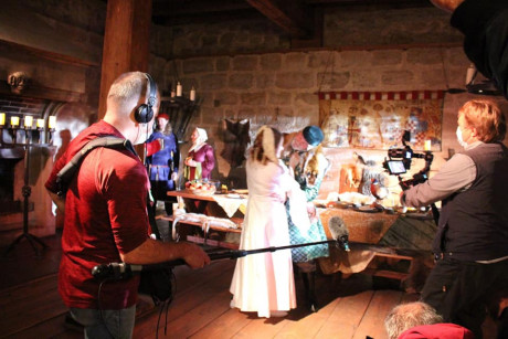 Als Jo Müller sie dann dieses Jahr zum Drehen der „Unheimlichen Geschichten“ rief, waren die Schwertkämpfer natürlich sofort dabei. Besonders erfreulich war, dass sie für die entsprechenden Szenen auch die Requisite beraten zu dürfen. Dabei spielte Trainer Sergej Ermolaev den Ritter, Frank Halbgewachs den Alten Gatten und Tristan Maurer kam unerwartet zur Rolle des Knappen. Für die Aufnahmen im Wäscherschloß standen außerdem Eva und Thomas Maihöfer von den Tänzern mit der Tanzchoreografie und die Band um Uli Hinderer: Lavandera (die Wäscherin) mit Musik zur Seite, ohne die das Ganze nicht möglich gewesen wäre. Alle waren mit Begeisterung dabei auch wenn es bis spät in den Abend ging und warten nun gespannt auf das Ergebnis.