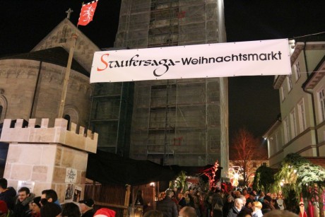 Der Standort des Staufersaga-Weihnachtmarktes hat sich zum Vorjahr kaum verändert. Das kleine Stauferdorf zieht sich entlang des Johannisturms am Marktplatz bis zur Nordseite der Staufer-Basilika. Viele große Tannenbäume, eine besondere Ausleuchtung des Mauerwerks der Johanniskirche und des Platzes wird dem historischen Markt ein ganz besonderes Flair geben.